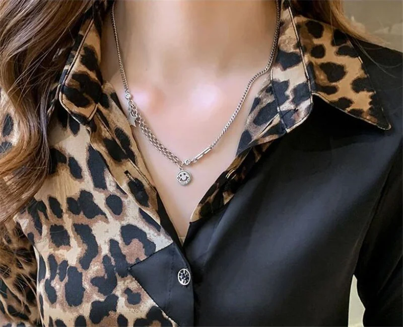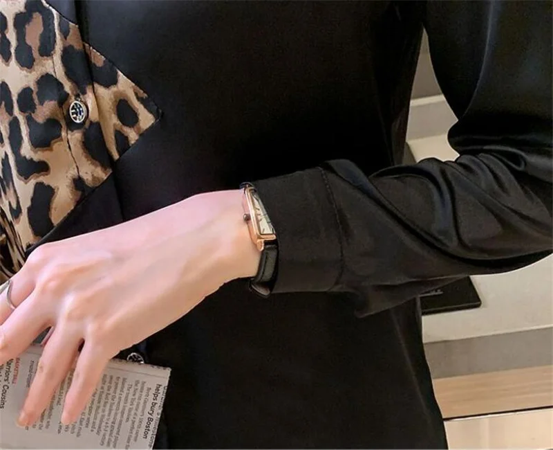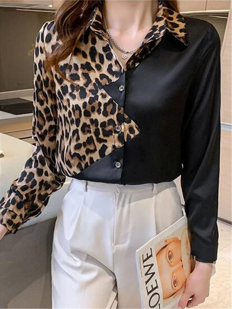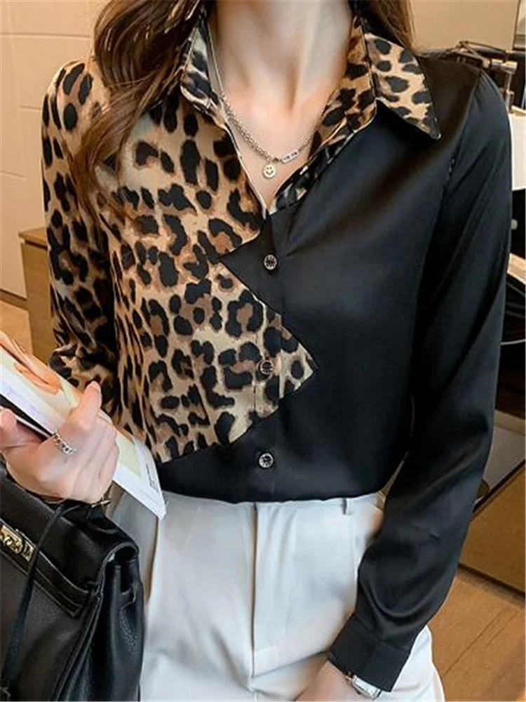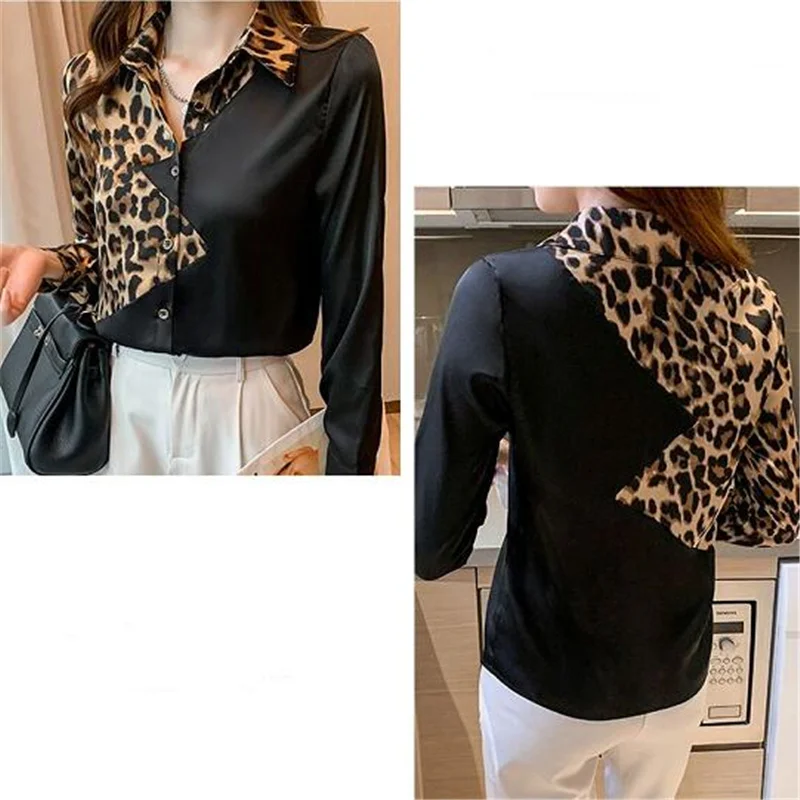 Women Shirts Black Leopard Contrast Top For Women