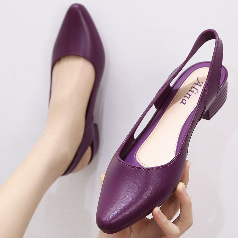 Fashion Jelly Sandals Women Pointed Toe Chunky Med High Heels